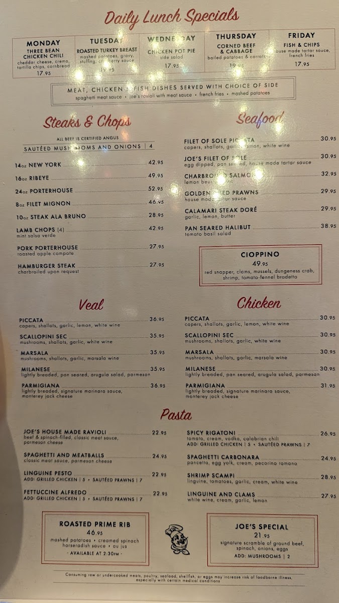 Of course, no visit is complete without indulging in other crowd favorites like the charbroiled cheeseburger or the ravioli with meatballs, both praised for their generous portions and exceptional taste. Ameet Kamath highlights the attentive service provided by the seasoned staff, who bring a slice of America circa 2000 to life with their warm hospitality. The joy of the dining experience at Original Joe’s extends beyond the food—it’s the welcoming service that makes every meal memorable.